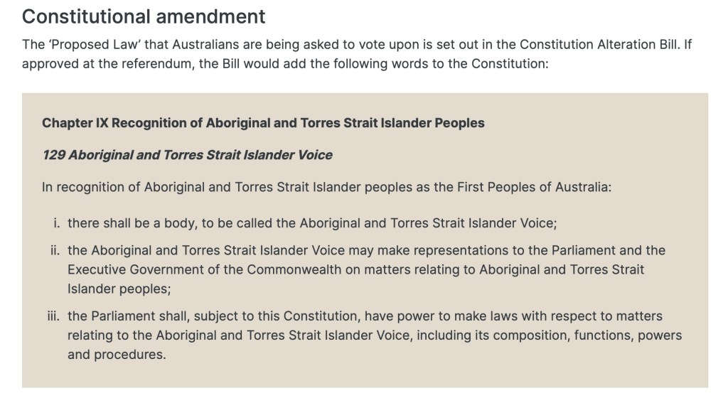 What Australians are being asked to vote on consists of the following three paragraphs: